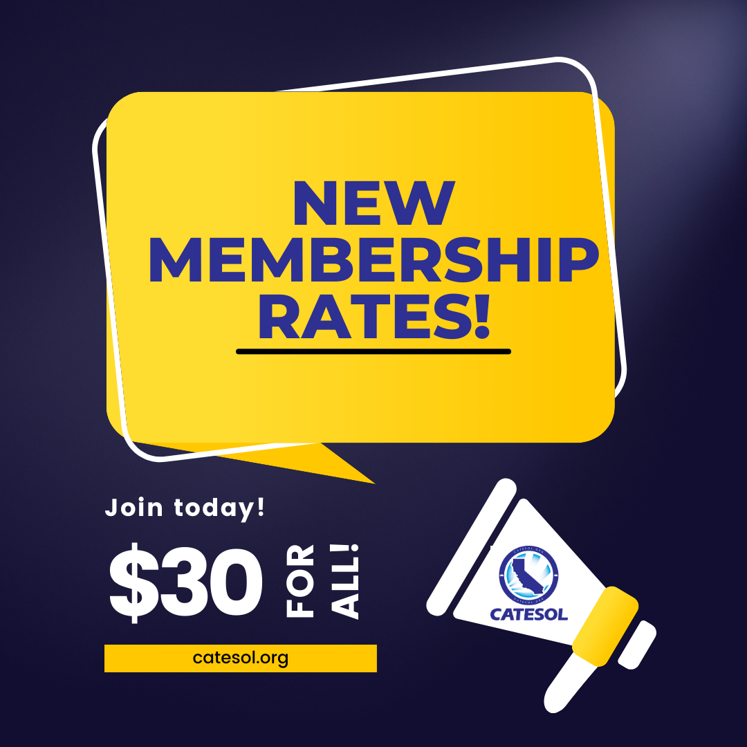 Students and Part-Time Teachers: Check out the Gordon Johnson Award for a chance to win a one-year CATESOL membership. Rolling submission deadlines. See award information.